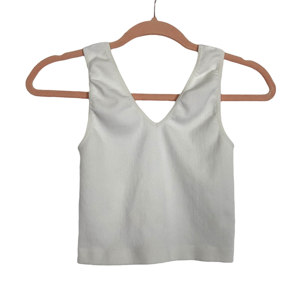 Vestique White Ribbed V-Neck Seamless Top - Size M/L (See Notes)