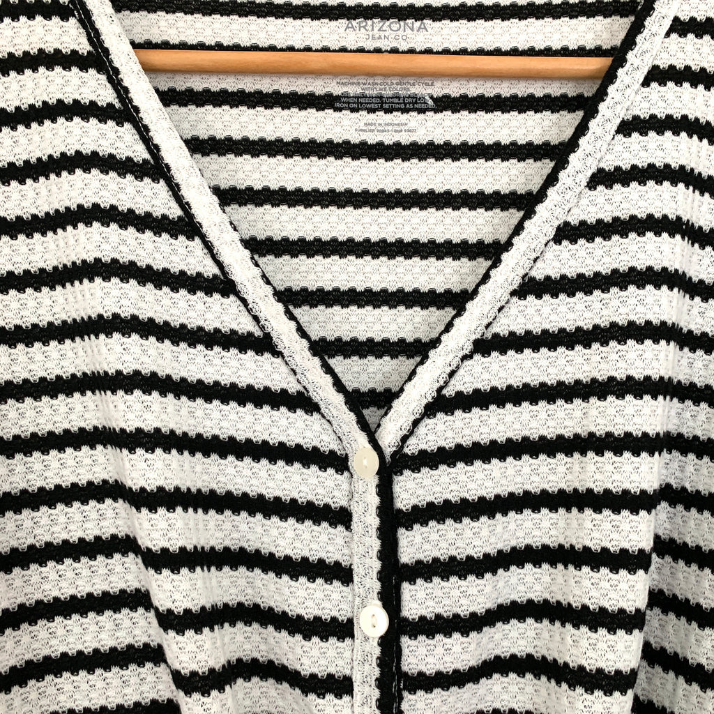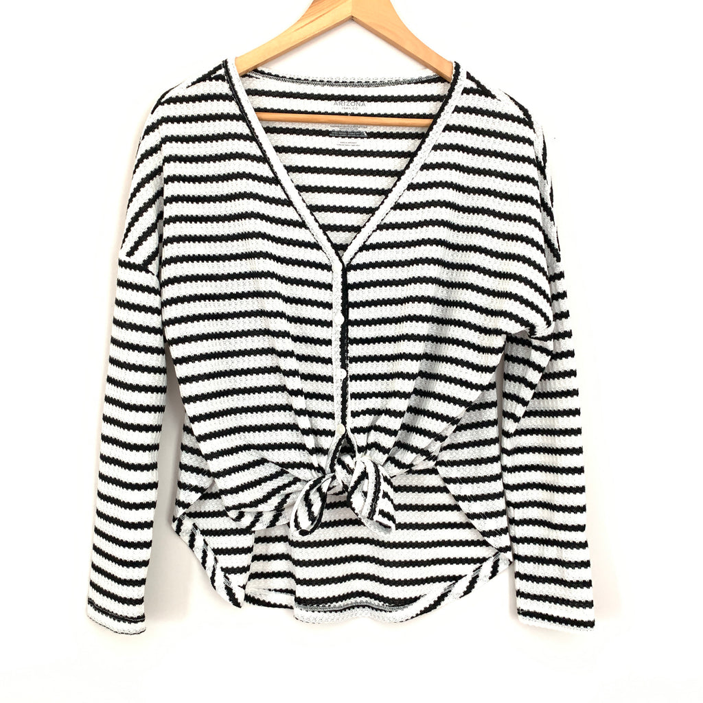Arizona Waffle Knit Striped Tie Front Blouse- Size S