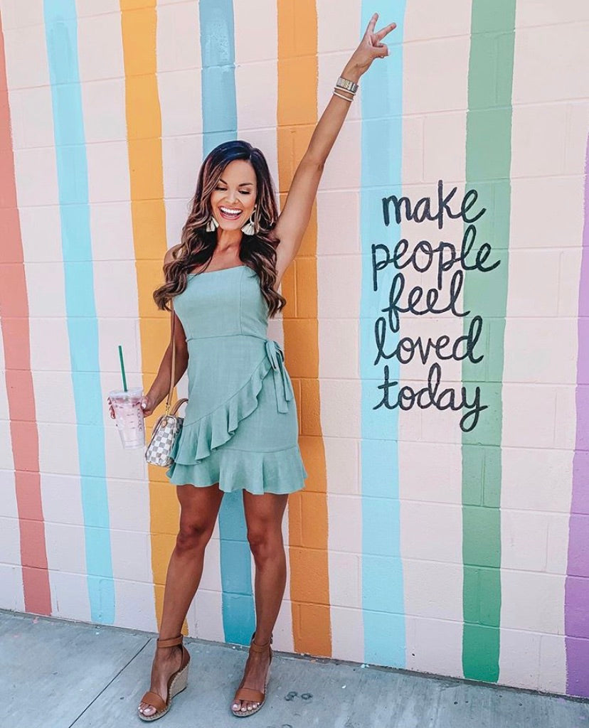 Blue Blush Green Faux Wrap Dress- Size S
