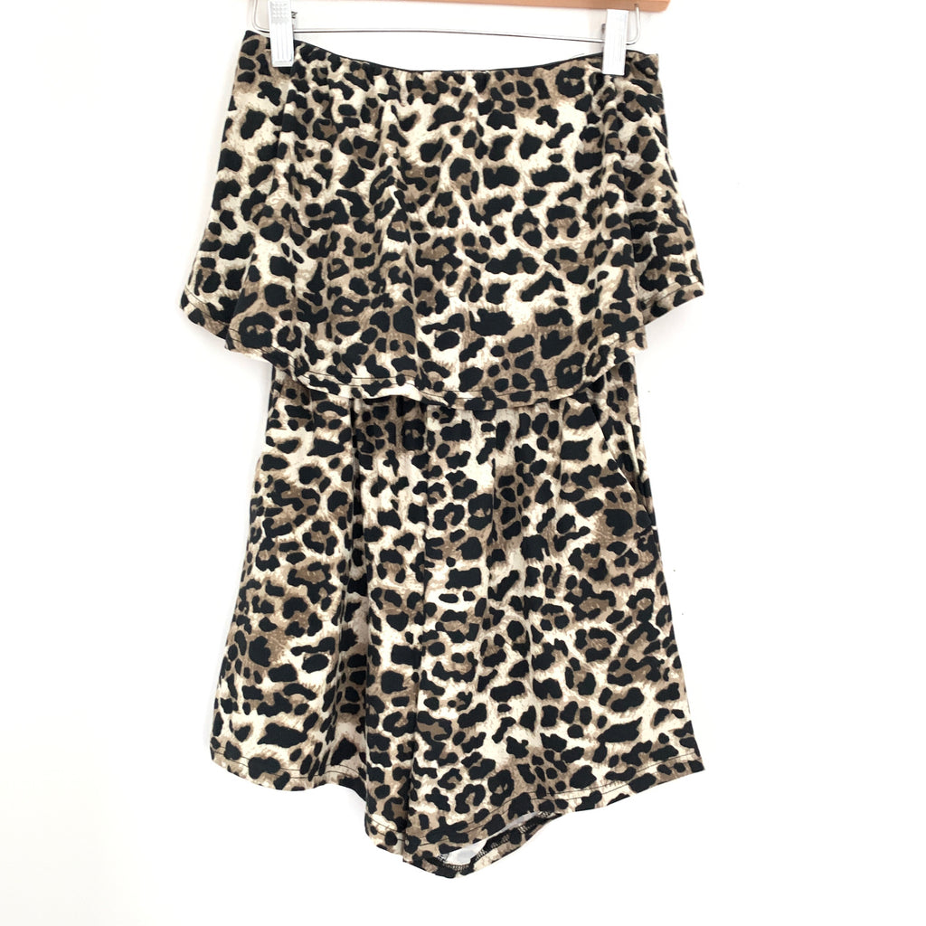 Davi&Dani Strapless Ruffle Animal Print Romper- Size S