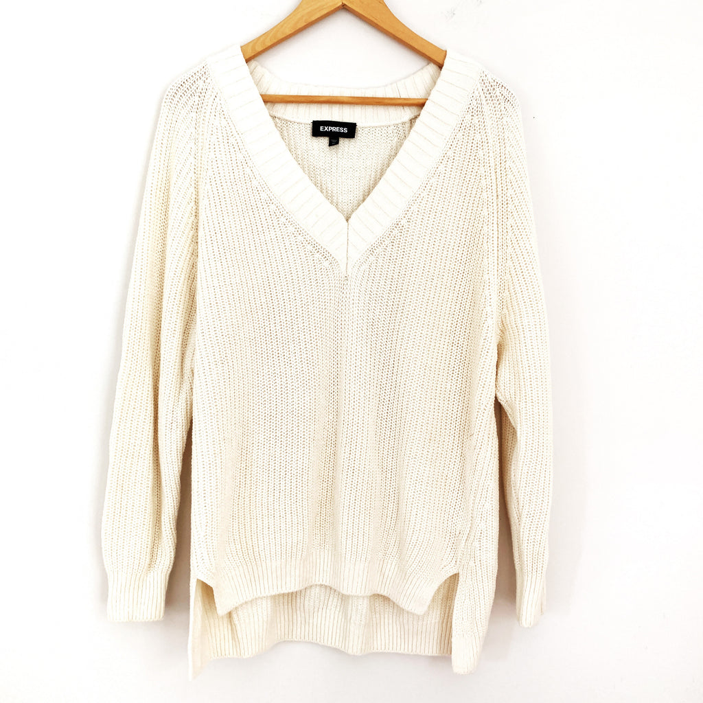 Express Ivory V Neck Knit Sweater with Longer Back- Size XS
