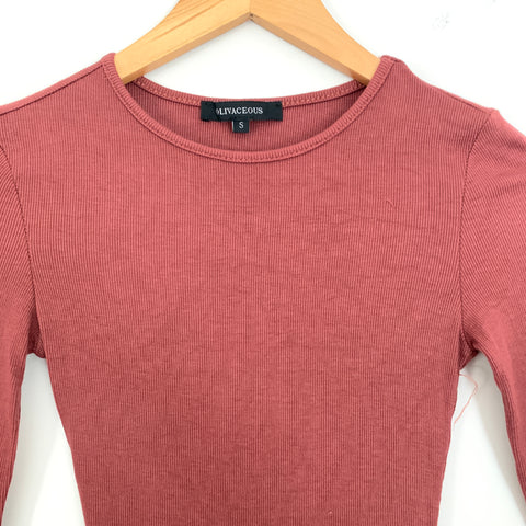 Olivaceous Brown Ribbed Long Sleeve Thong Bodysuit- Size S