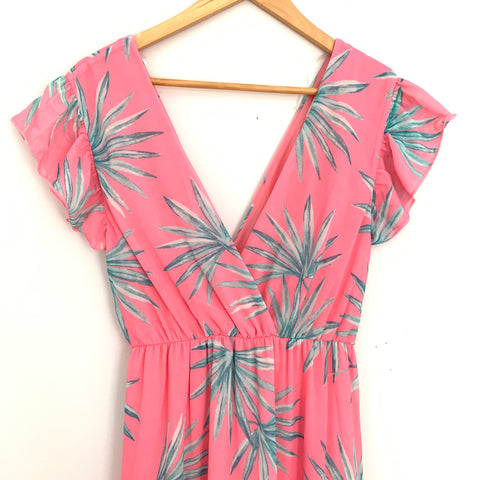 Peach Love Pink Palm Print Maxi Dress with Side Slits- Size S