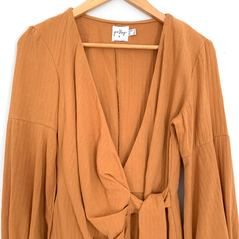 Princess Polly Mustard Faux Wrap Romper- Size 4