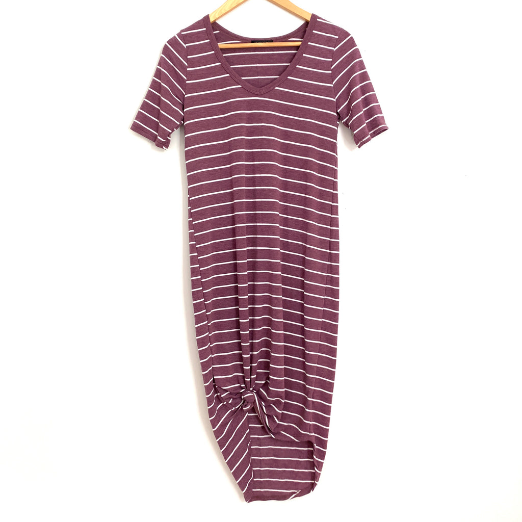 Sweet Claire Purple Striped V Neck Short Sleeve Midi Dress- Size S