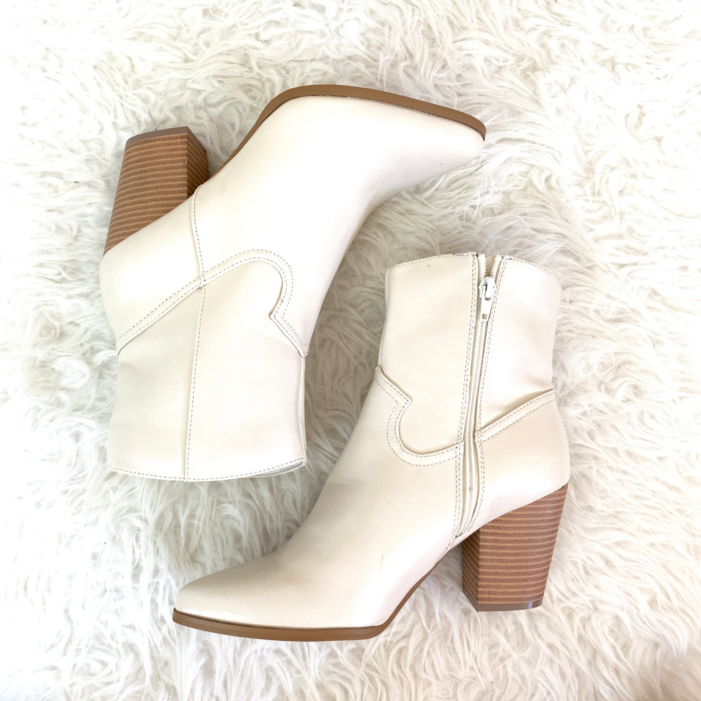 Shoedazzle Ivory Shine Cowgirl Booties- Size 8.5