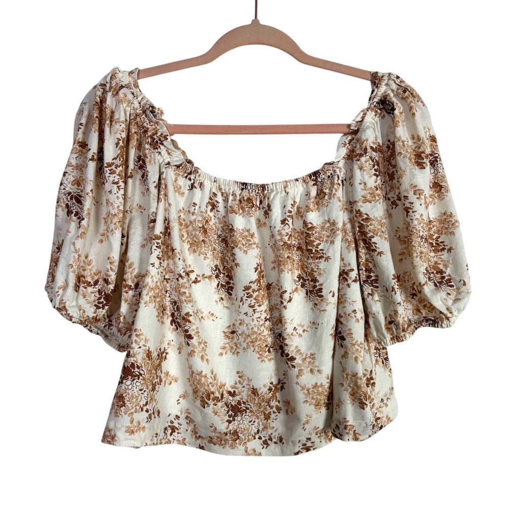 Abercrombie & Fitch Cream Printed Linen Blend Puff Sleeve Top- Size S (we have matching shorts)