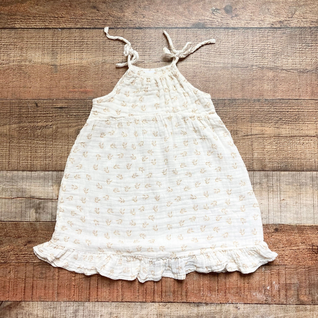 Angel Dear Muslin Cream Printed Shoulder Strap Dress- Size 3T