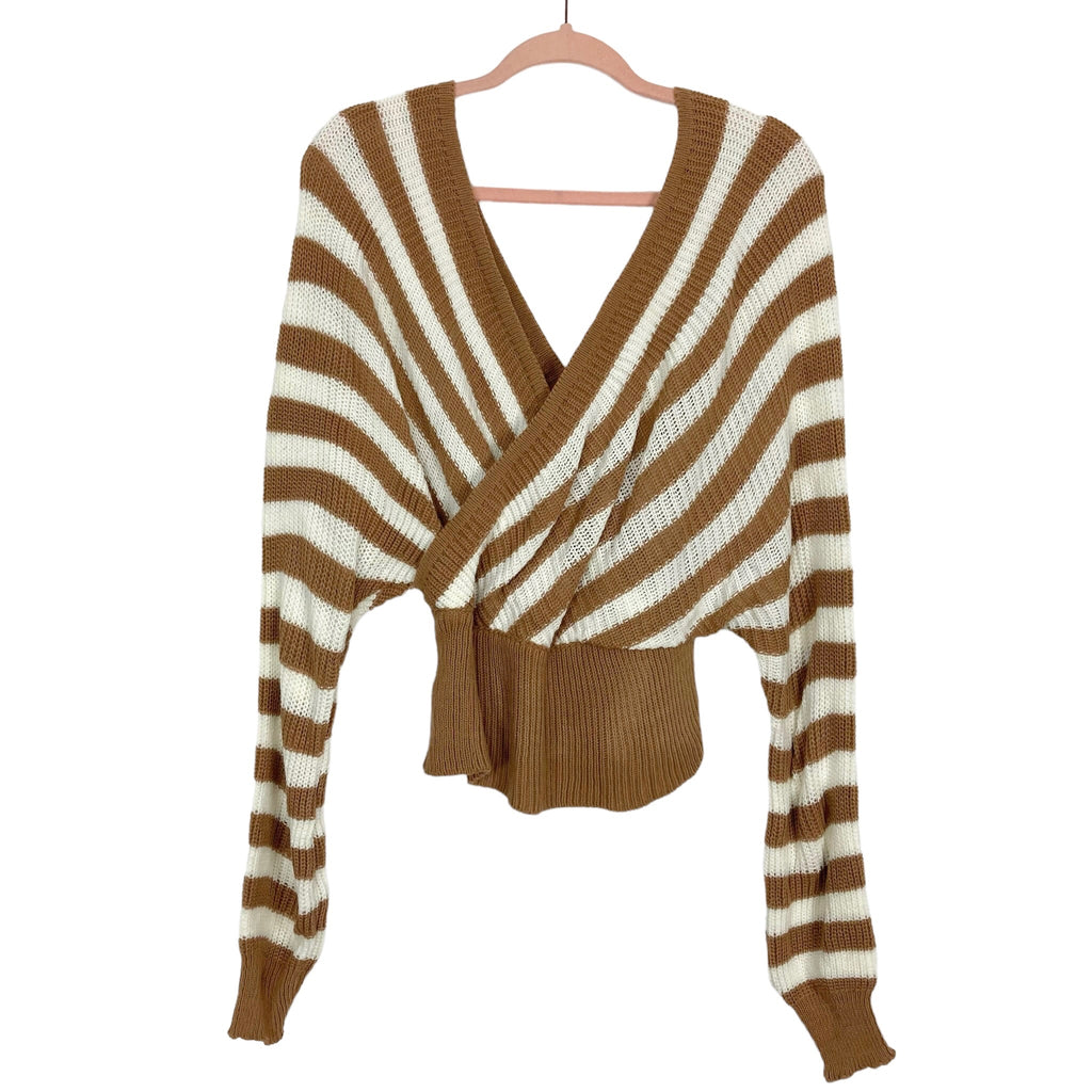 AQE Mocha/White Striped Surplice Sweater- Size M (EU)