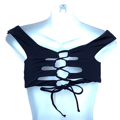 Azure Swim Black Beaded Off the Shoulder Lace Up Back Bikini Top- Size S (TOP ONLY)
