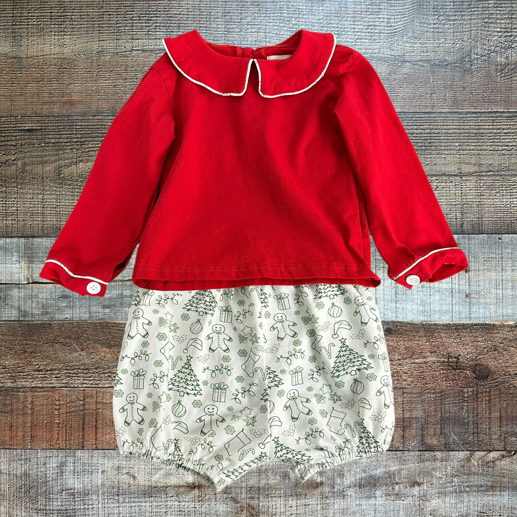 Bitty Babe Red Top/ White Christmas Bottoms Outfit - Size 2