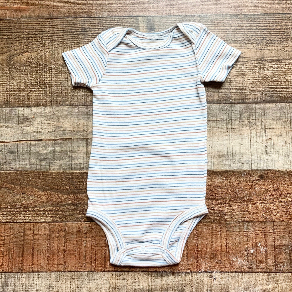 Carter's White/Blue/Brown Striped Onesie- Size 9M