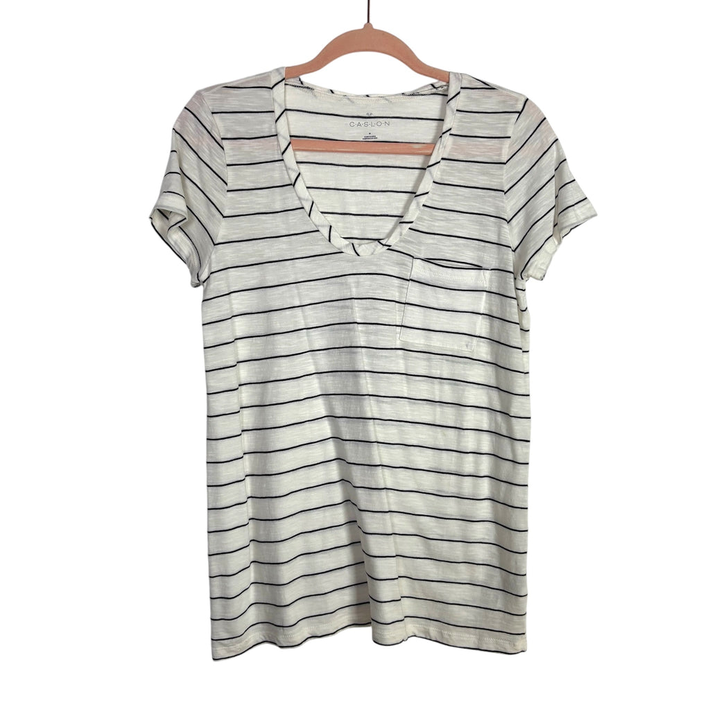 Caslon White with Black Stripes Scoop Neck Pocket Tee- Size M