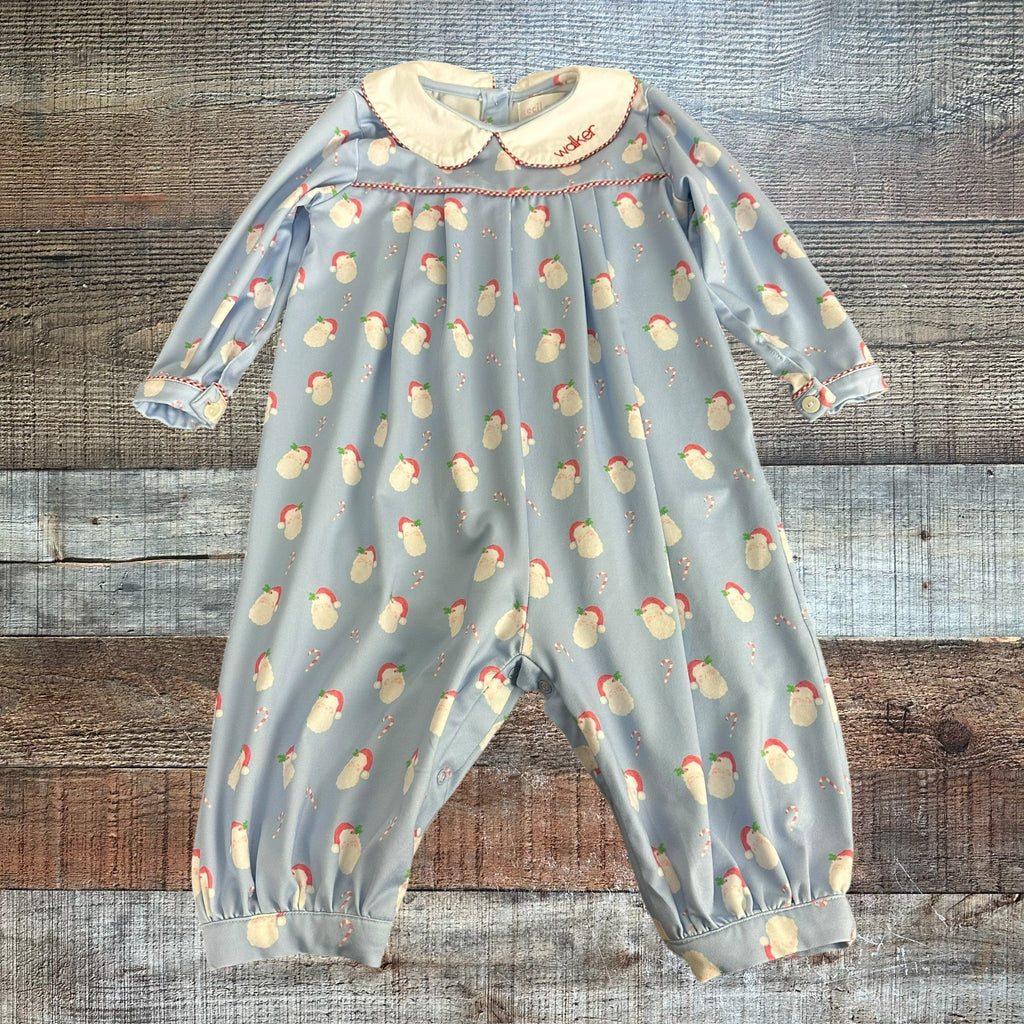 Cecil And Lou Light Blue Santa Embroidered Walker Outfit - Size 12M