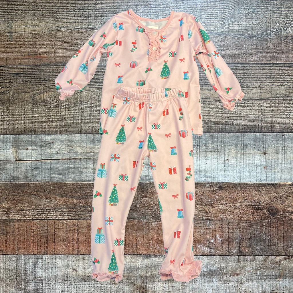 Cecil and Lou Pink Presents Ruffle Two Piece Pajamas- Size 2T