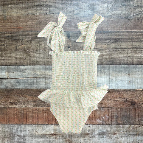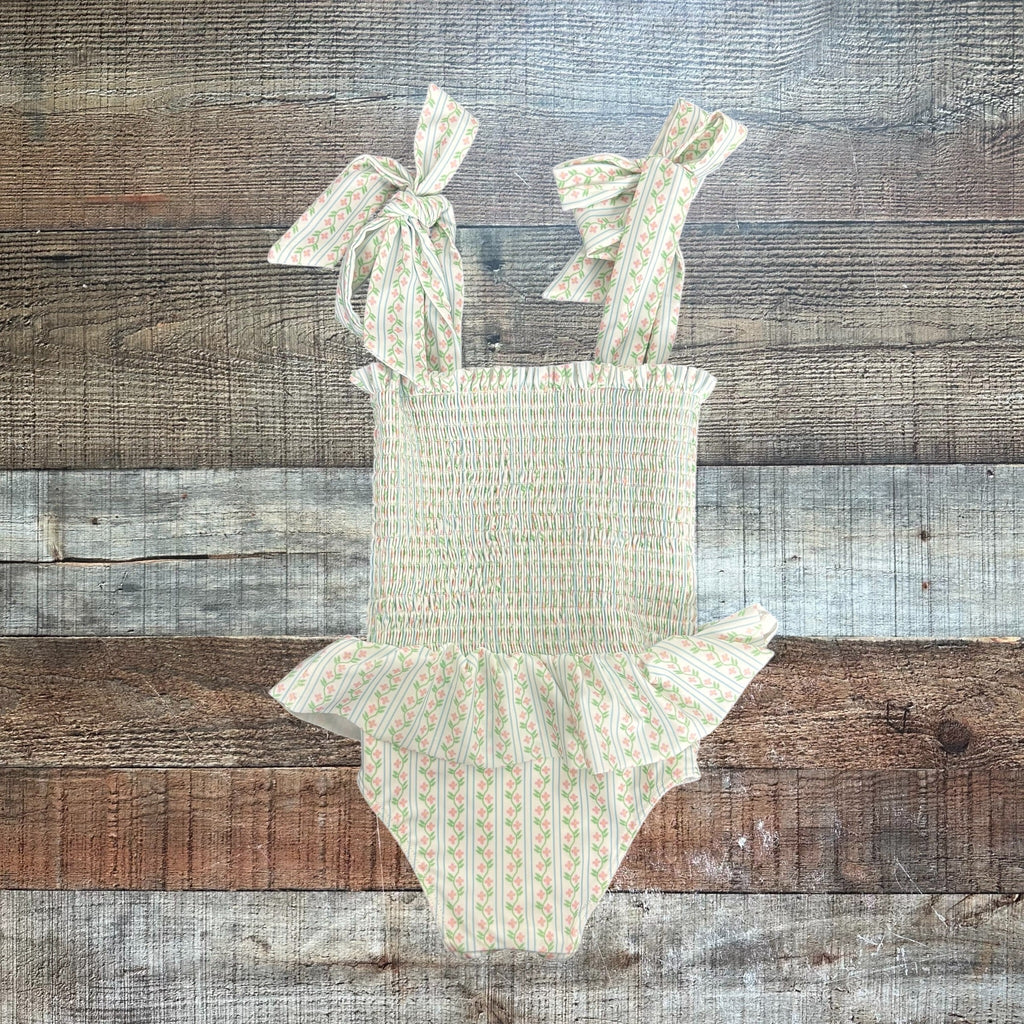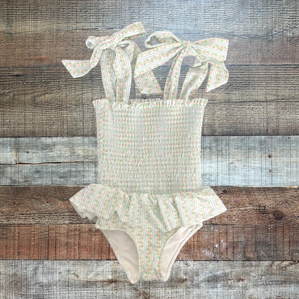 Cecil And Lou White Floral Print Smocked Swimsuit - Size 2T