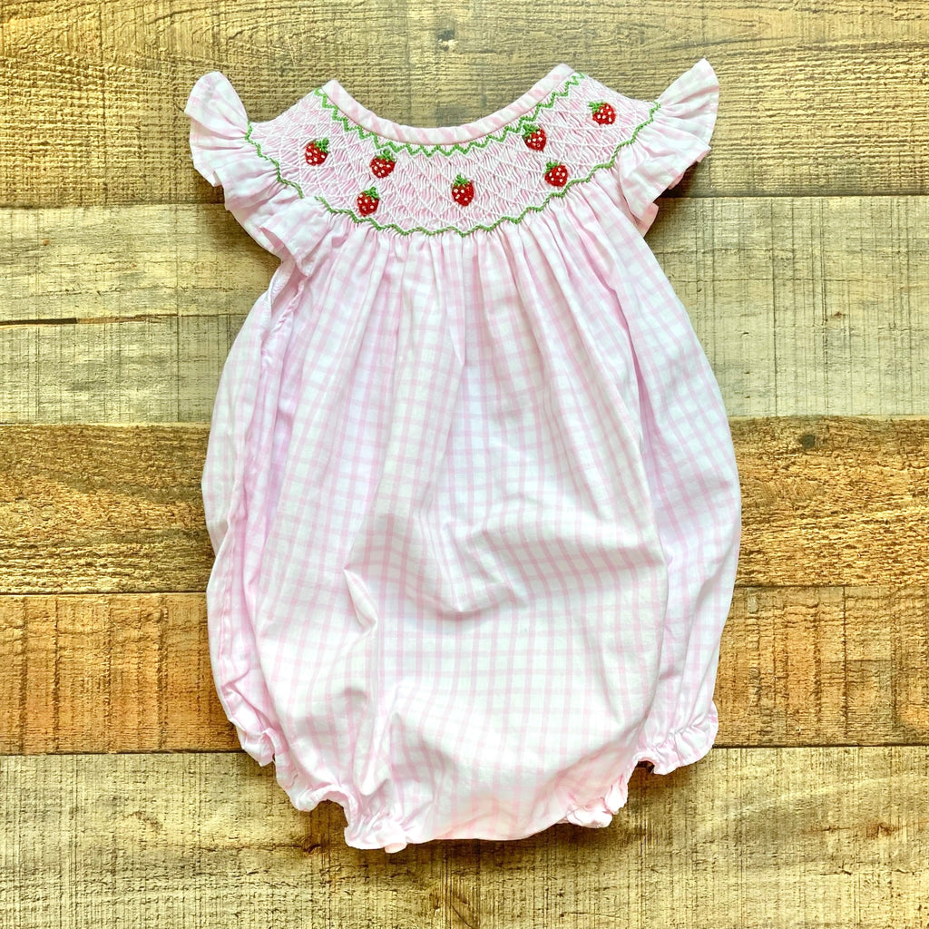 Cecil & Lou Pink and White Strawberry Smocked Bubble- Size 3M
