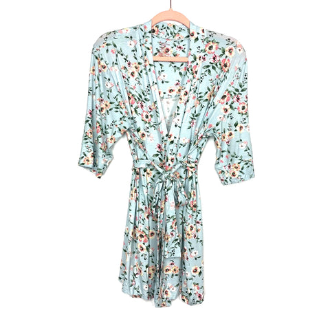 Earl Grey Light Blue Floral Lounge Robe- Size S (We have matching bottoms)