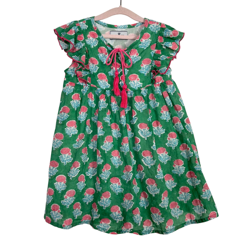 Ella Gray by Shrimp and Grits Green Printed Front Tie Dress- Size S (~3T)