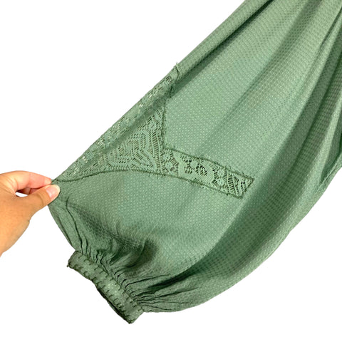 Free People Army Green Crochet Lace Detail Dress NWT- Size M