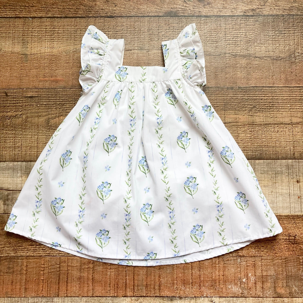 Grace & James Kids White/Blue/Green Floral Print with Ruffle Sleeves Dress- Size 2T (see notes)