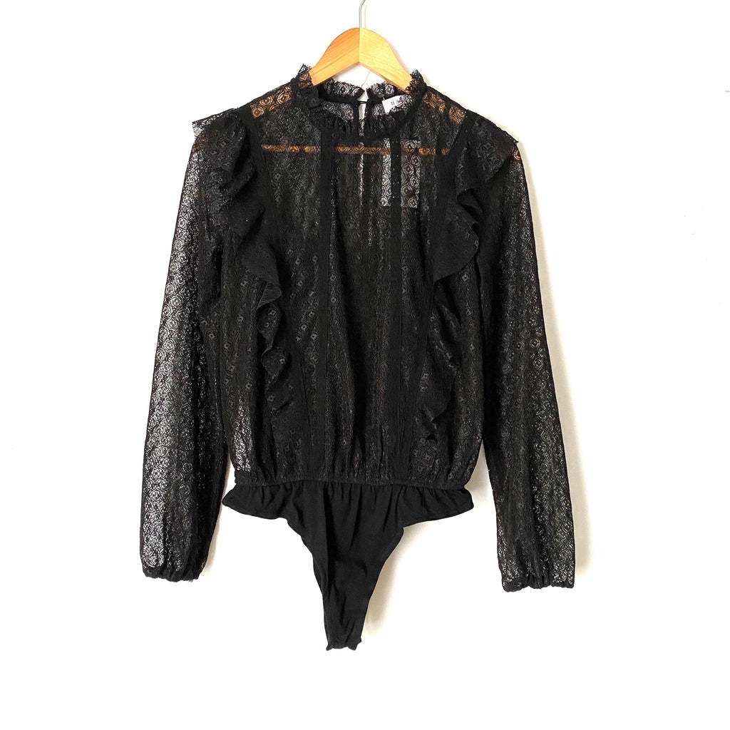 Hayden Black Mock Neck Lace Built In Camisole Bodysuit NWT- Size S