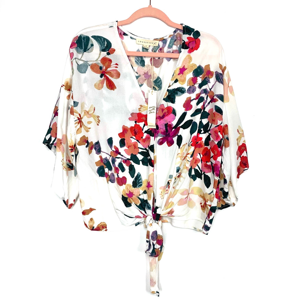 Lovestitch White Floral Print Front Tie Top NWT- Size S