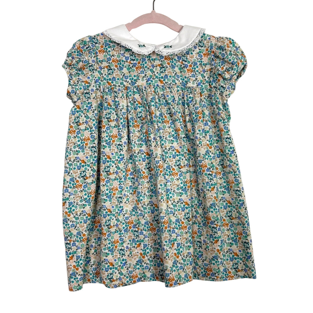 Lulu Bebe Blue/Teal/Mustard Floral Print Fine Corduroy Dress- Size 3T