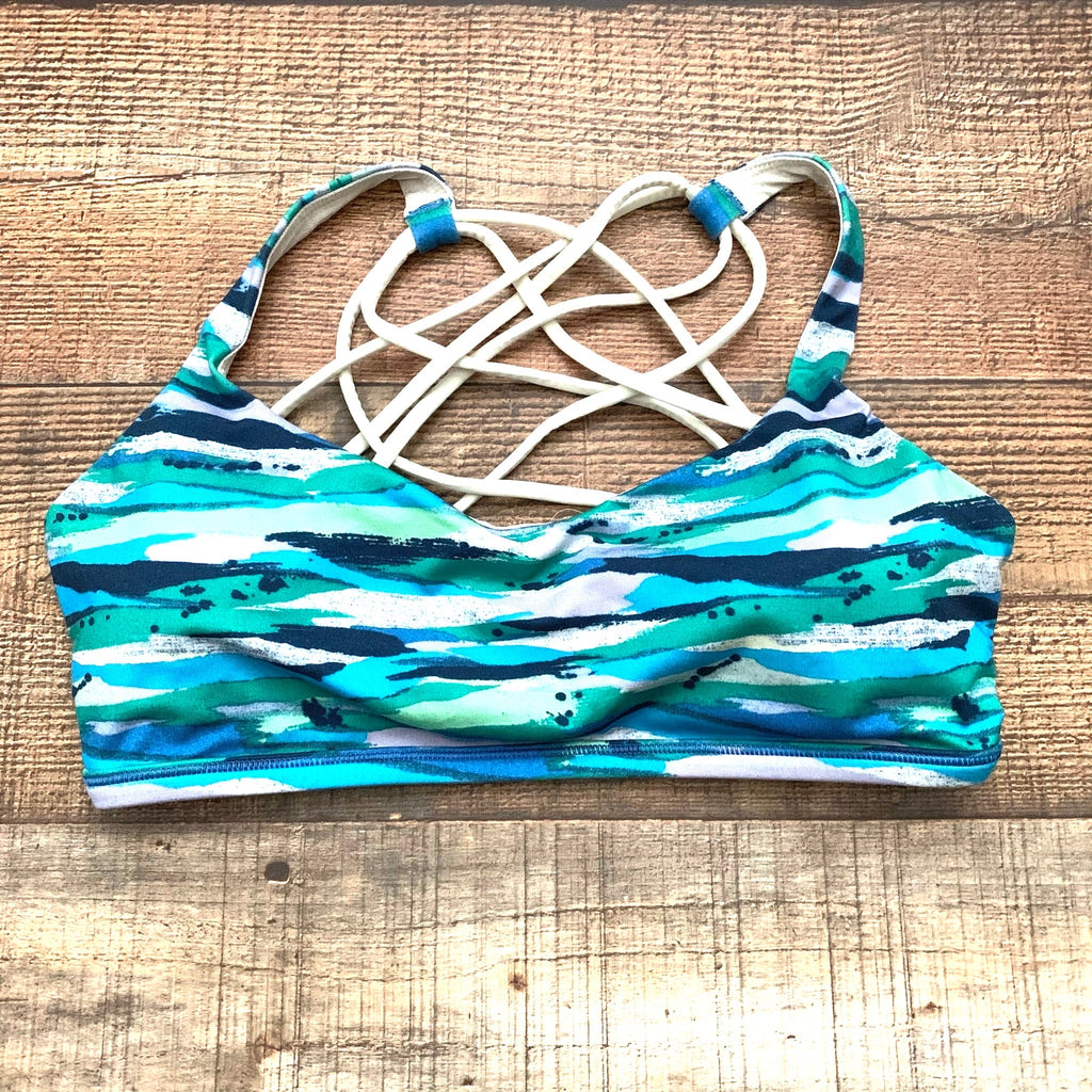 Lululemon Blue/Green/Cream Pattern Cream Straps Padded Sports Bra- Size 8
