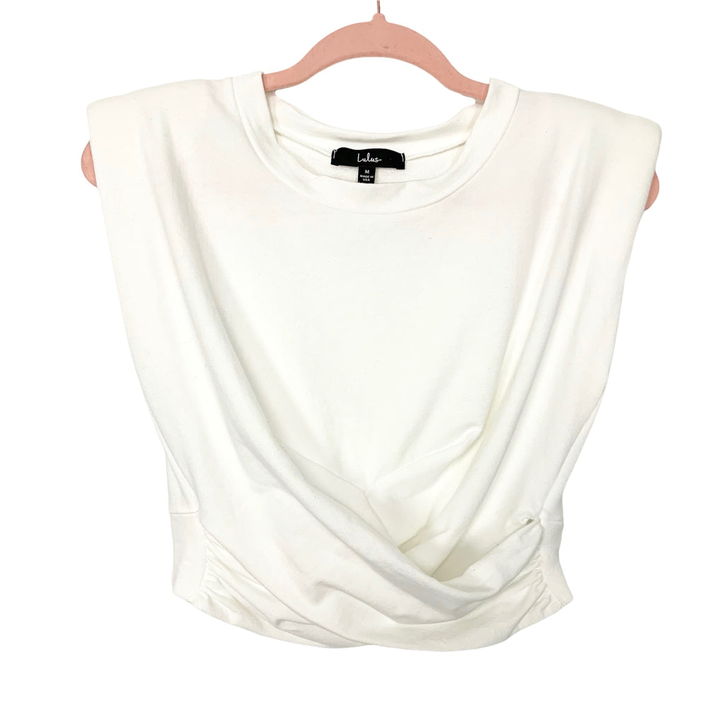 Lulus Ivory Sleeveless with Shoulder Pads Criss-Crossed Hem Top- Size M