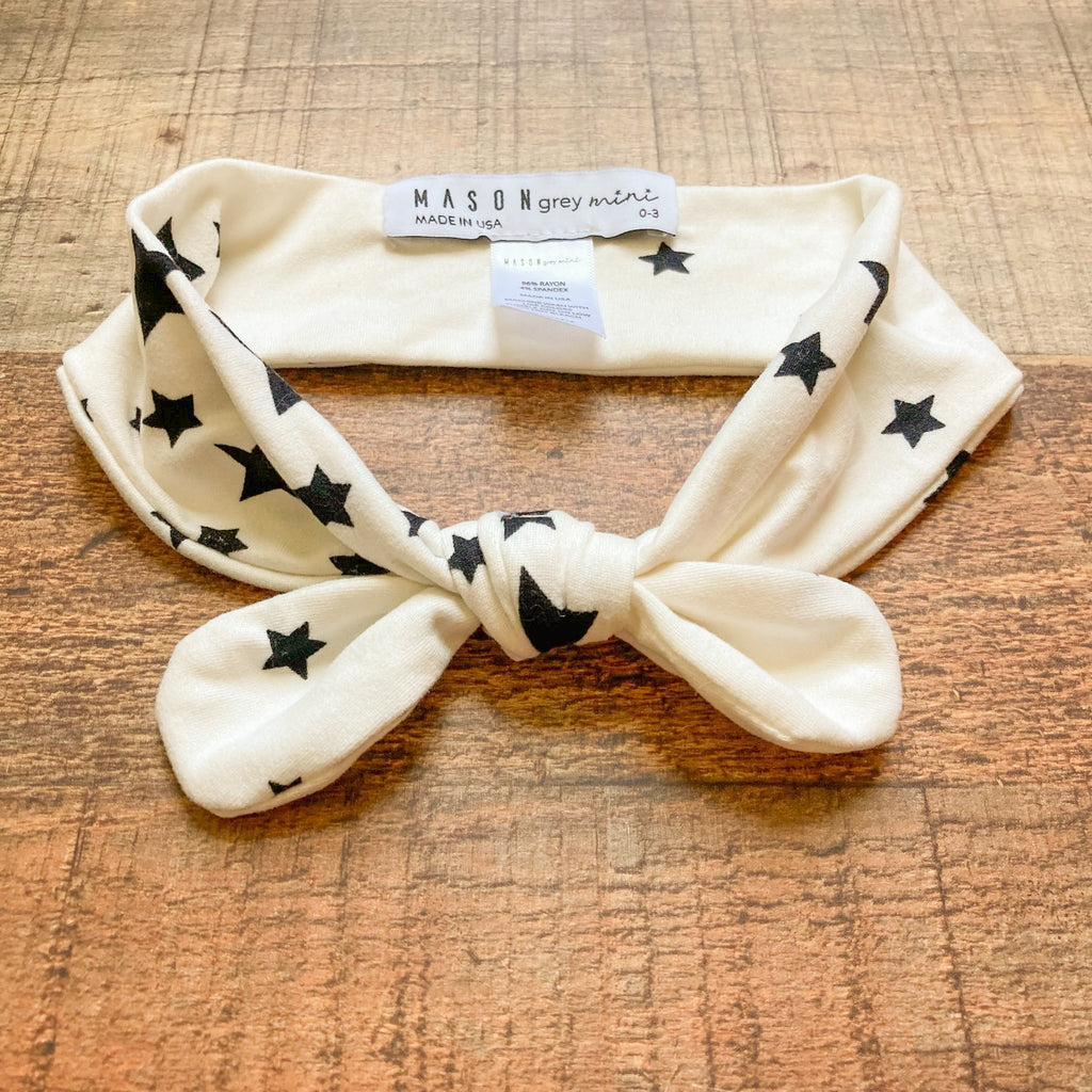 Mason Grey Mini White with Navy Star Bow Headband- Size 0-3M