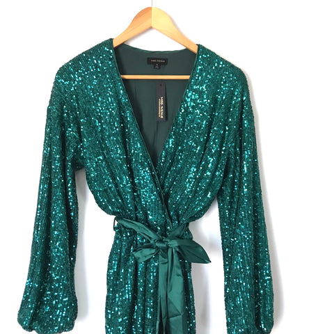 Miss Avenue Green Faux Wrap Sequins Satin Belted Dress NWT- Size S