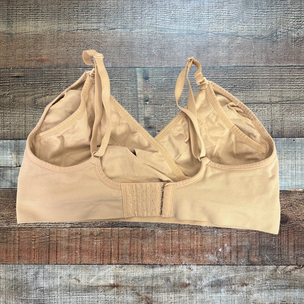 Motherhood Maternity Beige Padded Hands Free Pumping and Nursing Bra- Size L