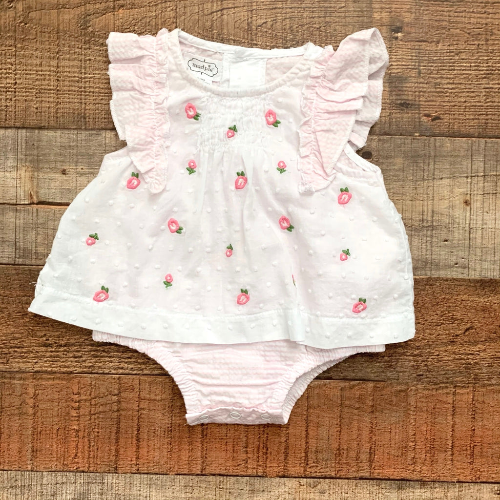 Mudpie Baby Girl Swiss Dot Embroidered Dress- Size 0-3M