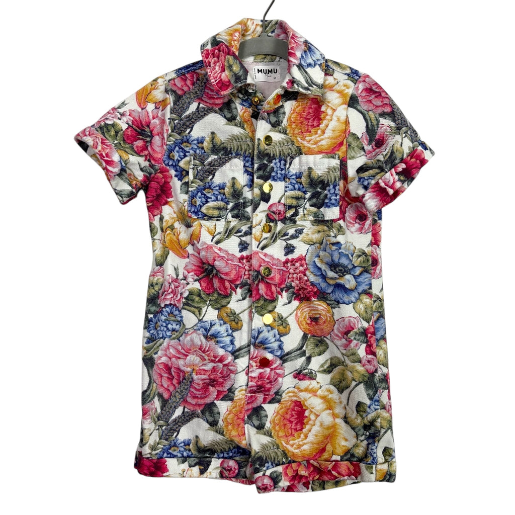 Show Me Your Mumu Mini Floral Print Denim Romper- Size 3T (sold out online)