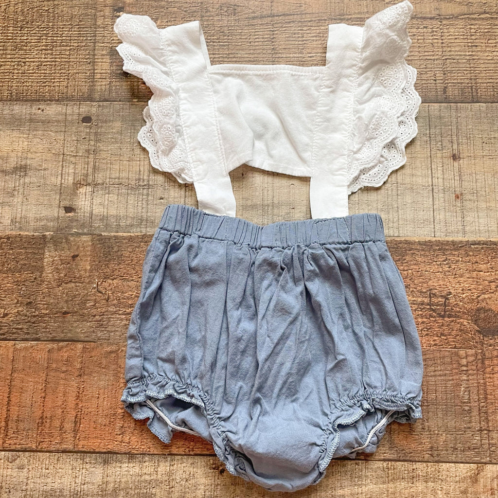 No Brand White and Blue Front Cutout Romper- Size ~3-6M (see notes)