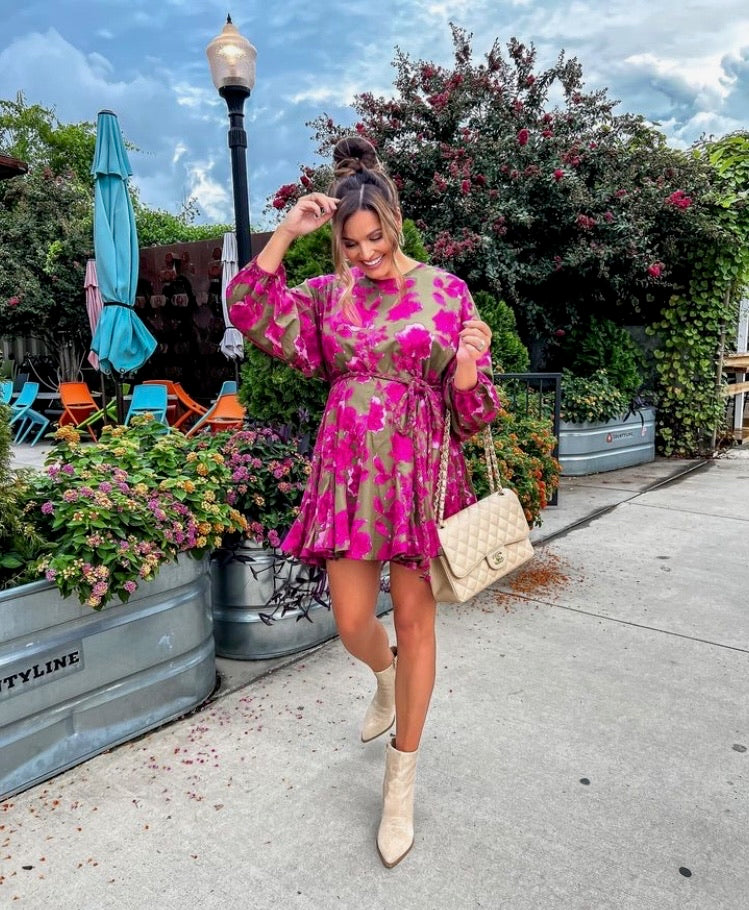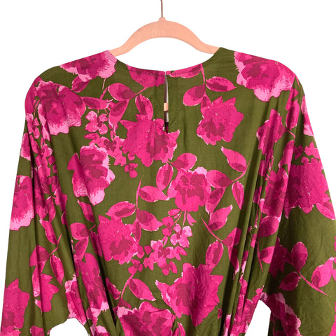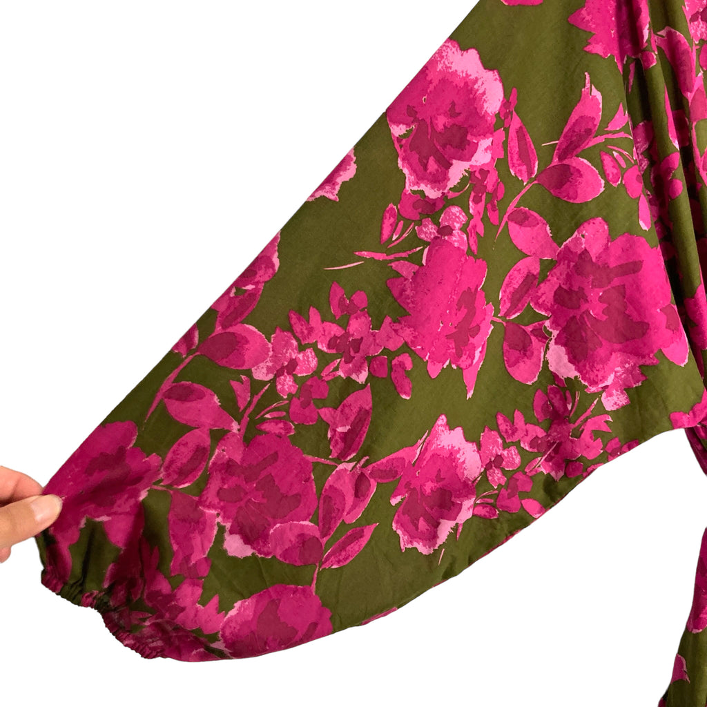 Olivaceous Green and Pink Floral Braided Belt Dress- Size L (see notes)