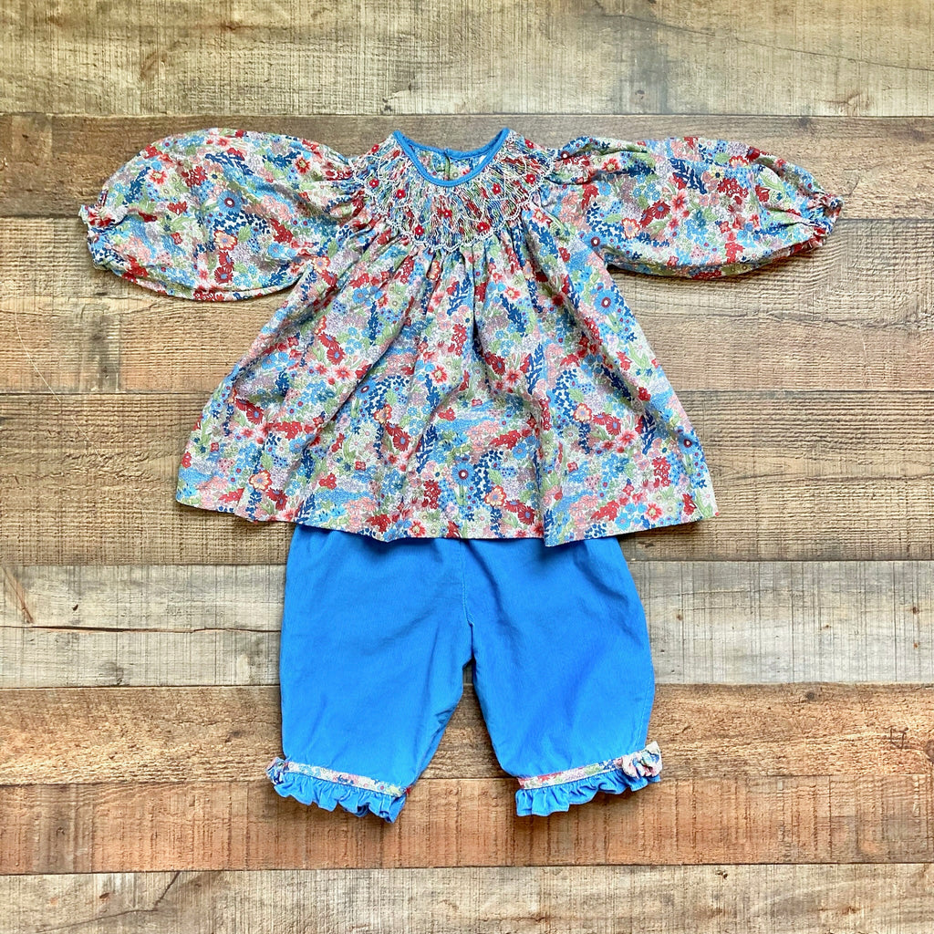 Petit Ami Smocked Floral Top with Blue Corduroy Pants Set- Size ~12-18M (sold as set, see notes)