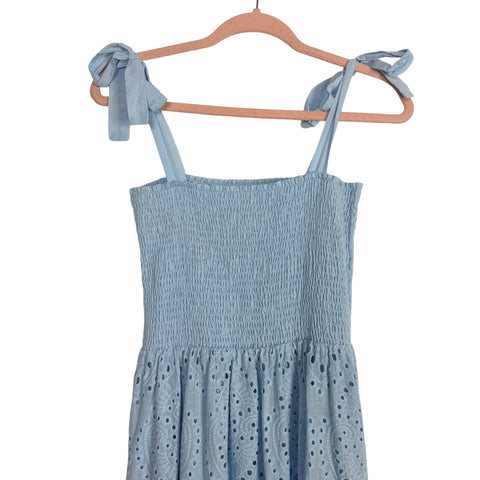 Pink Lily Blue Eyelet Lined Smocked Bodice Tie Straps Dress NWT- Size M