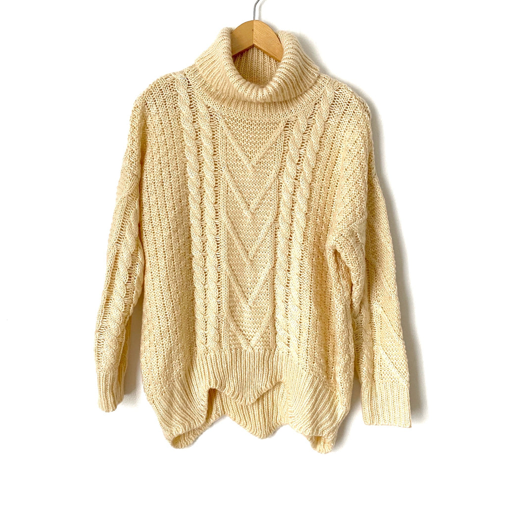 Pink Lily Cream Turtleneck Zig Zag Hem Sweater- Size S