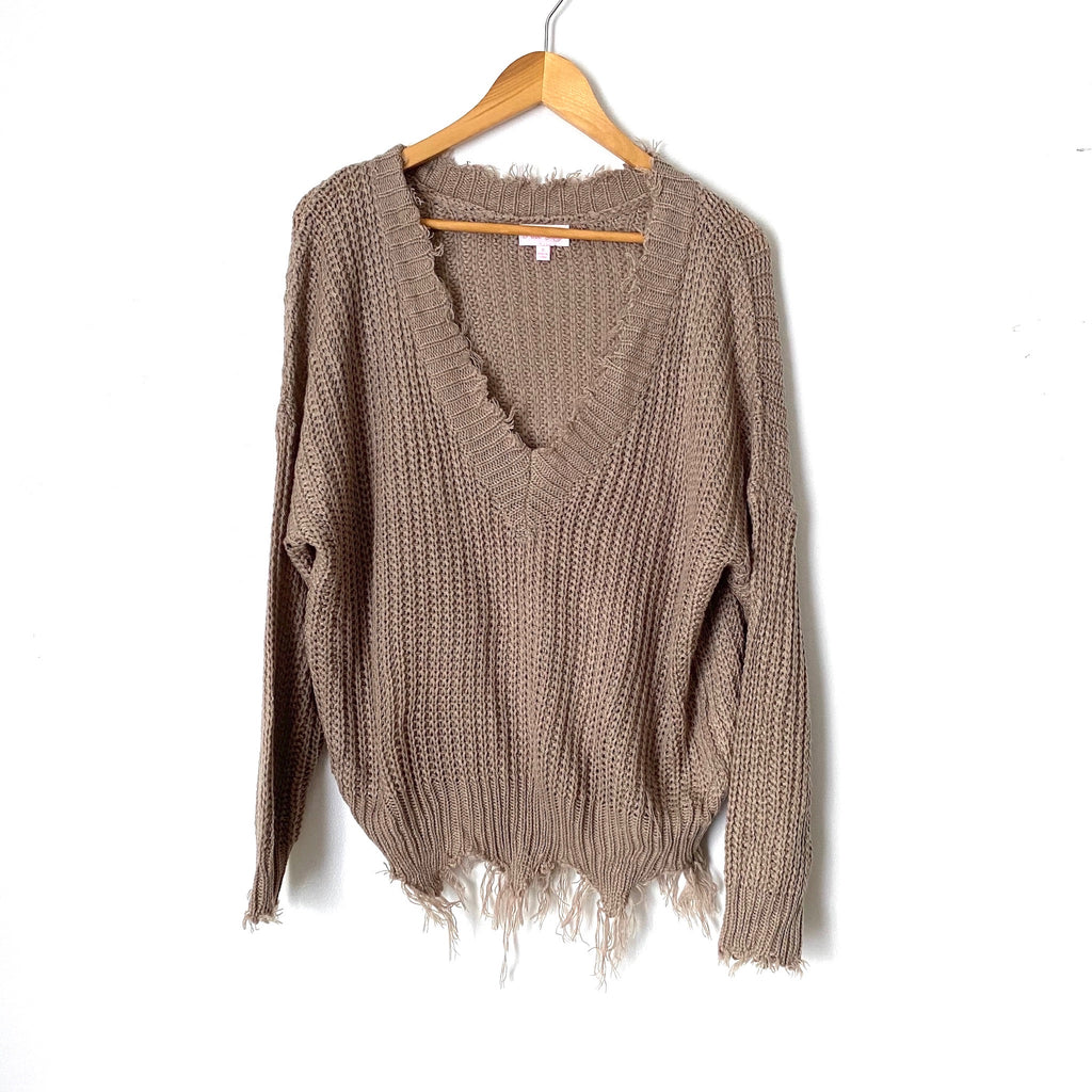 Pink Lily Distressed Hem V Neck Sweater- Size S