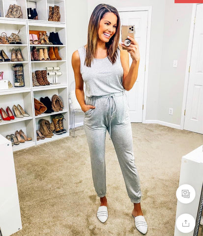 Pink Lily Grey Drawstring Waist Jumpsuit- Size M