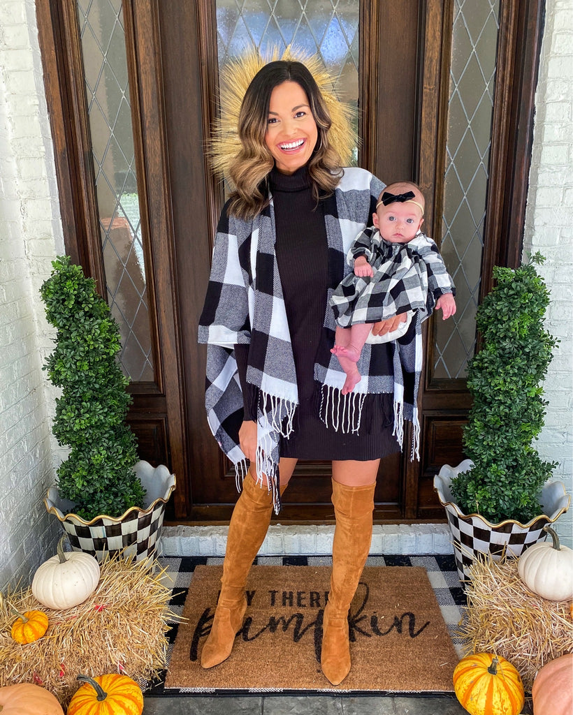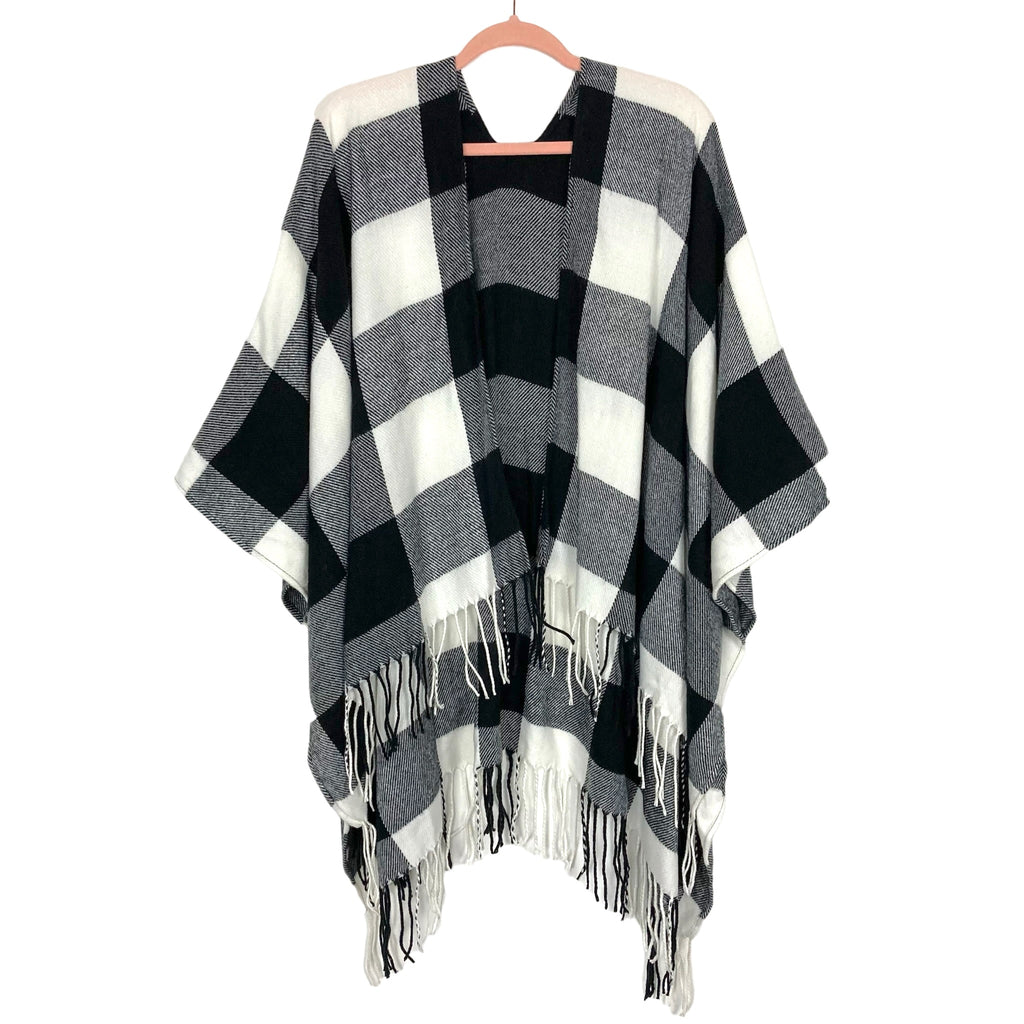 Pink Lily White/Black Plaid So Beautiful Tonight Fringe Cardigan Poncho- Size ~M (sold out online, see notes)