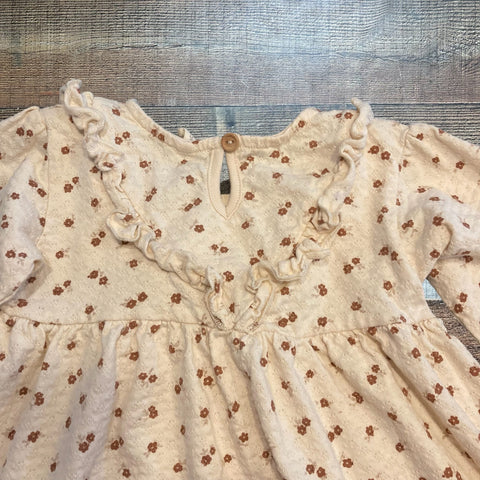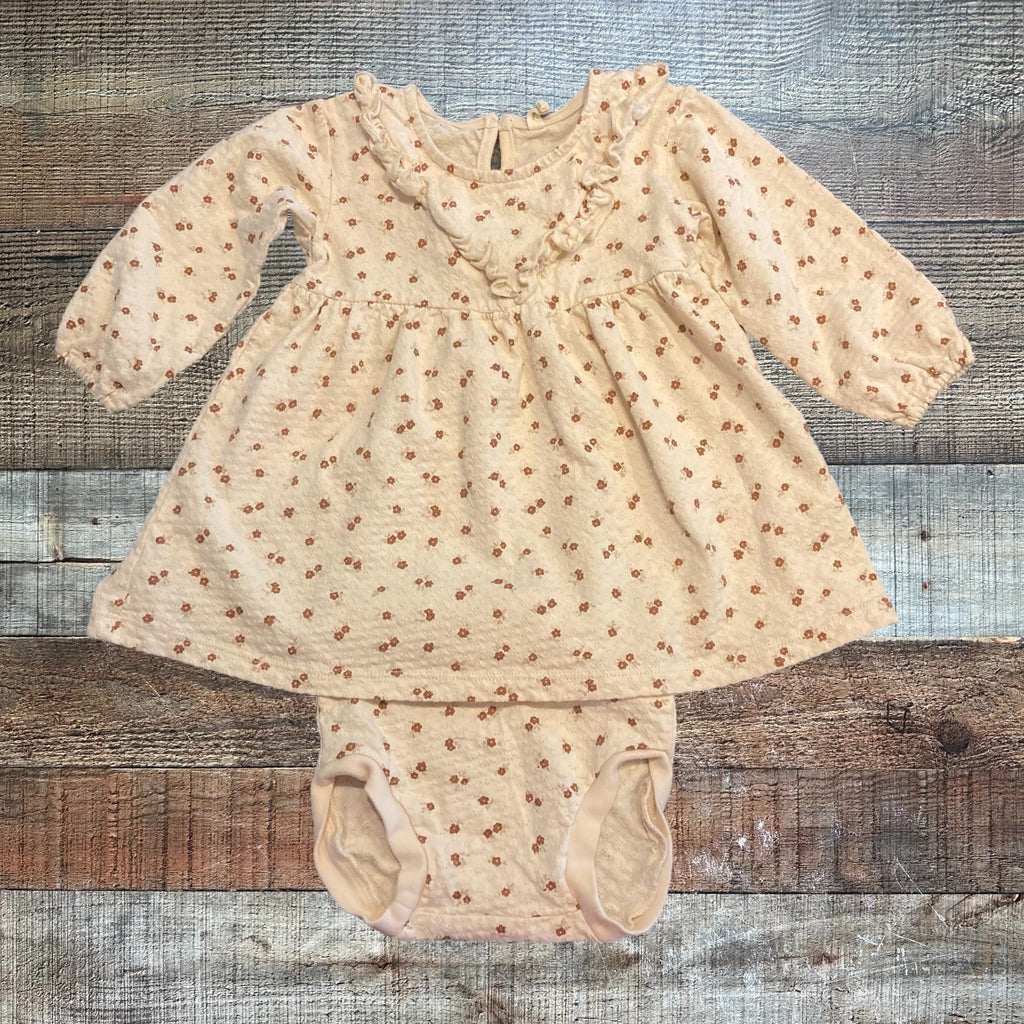 Quincy Mae Two Piece Cream Floral Dress and Bloomer Set- Size 18-24M