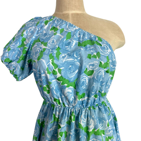 Show Me Your Mumu Blue and Green Floral One Shoulder Dress- Size S (sold out online)