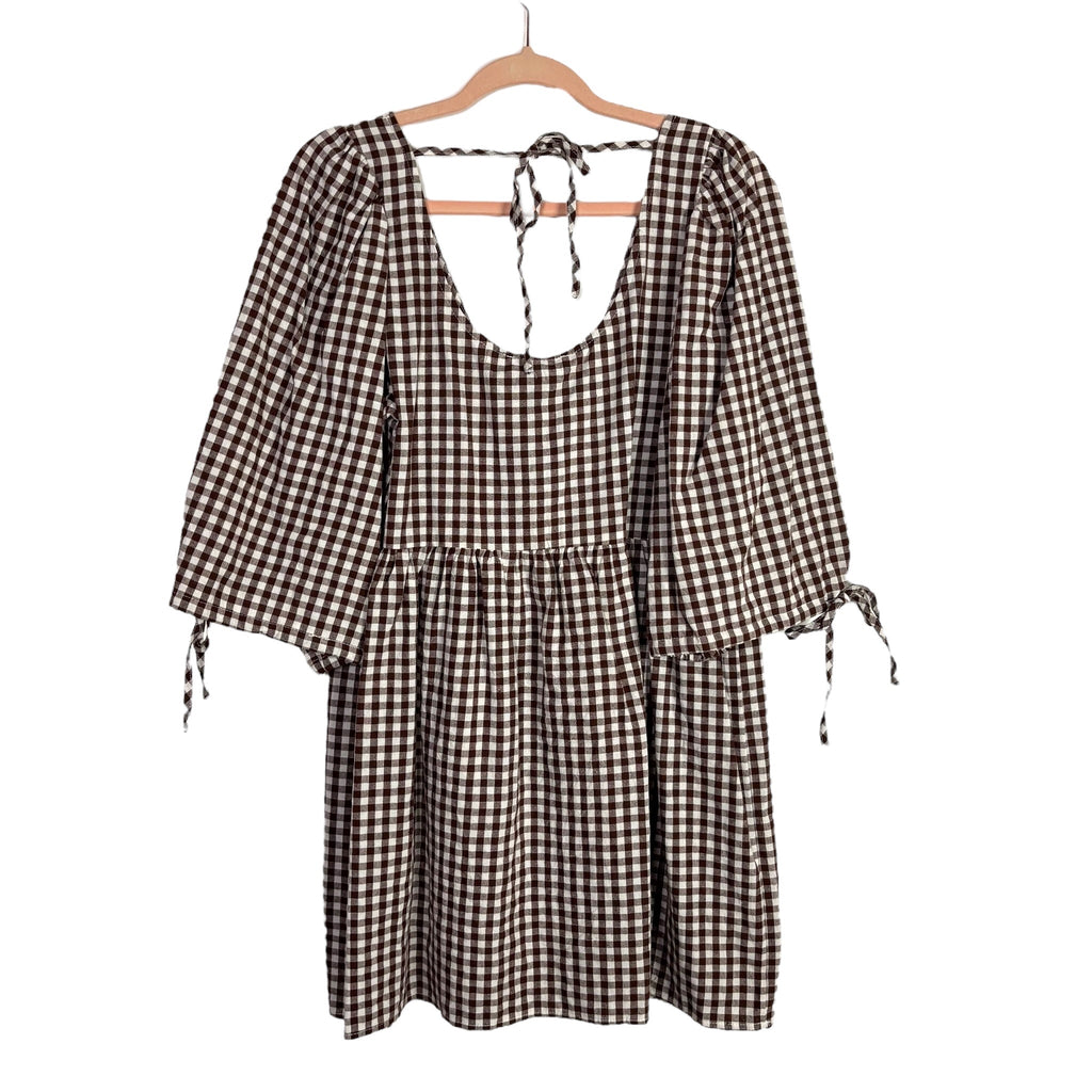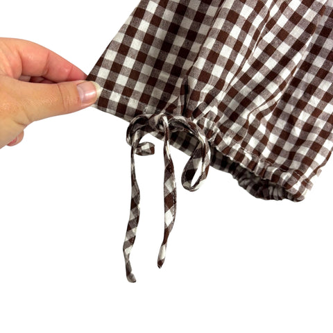 Showpo. Brown and White Check Tie Front Puff Sleeve Mini Dress NWT- Size 4