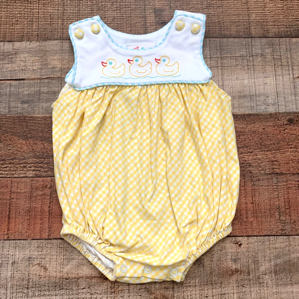 Shrimp & Grits Duck Yellow Gingham Bubble Romper- Size 3M
