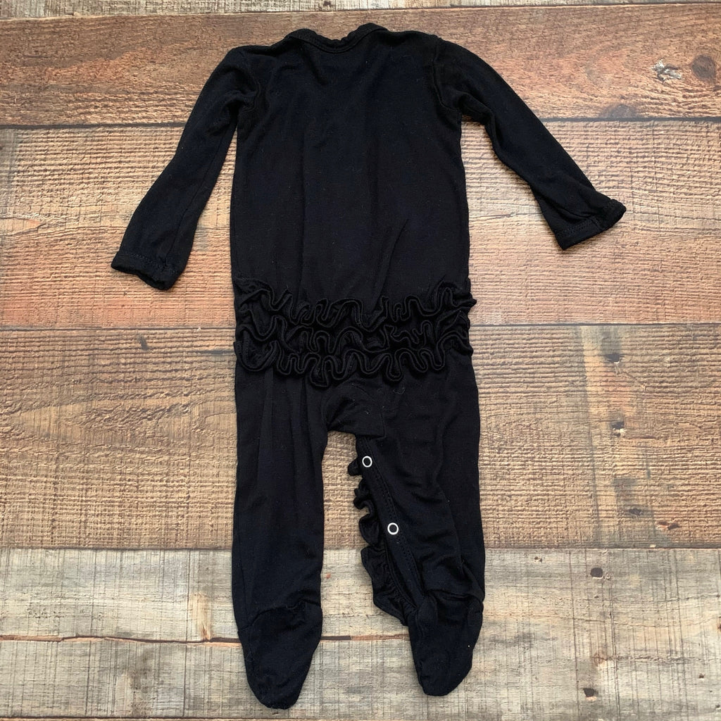 Spearmint Love Black Bamboo Ruffle Snap Up Footie Outfit- Size 0-3M