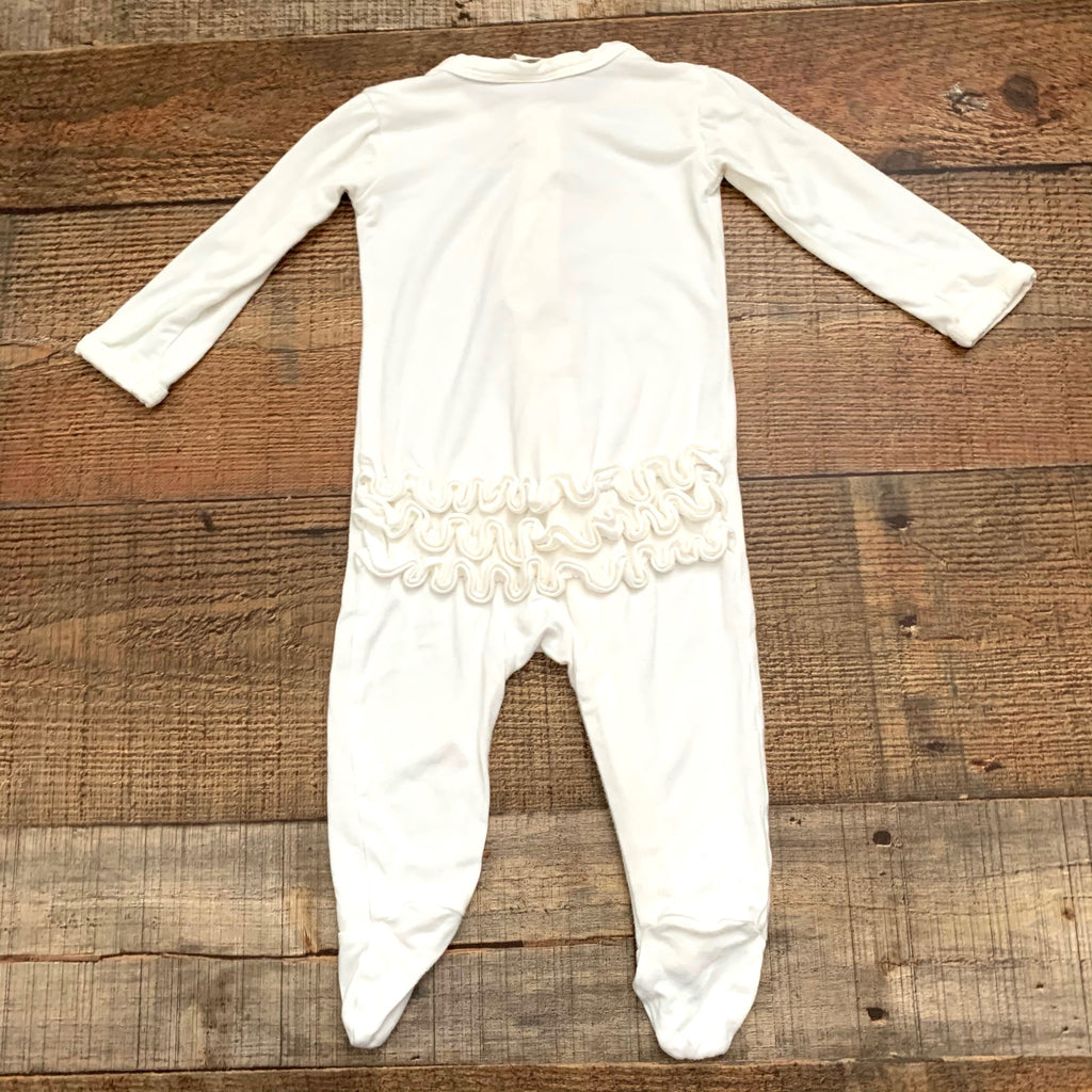 Spearmint Love White Bamboo Ruffle Zip Up Footie Outfit- Size 0-3M