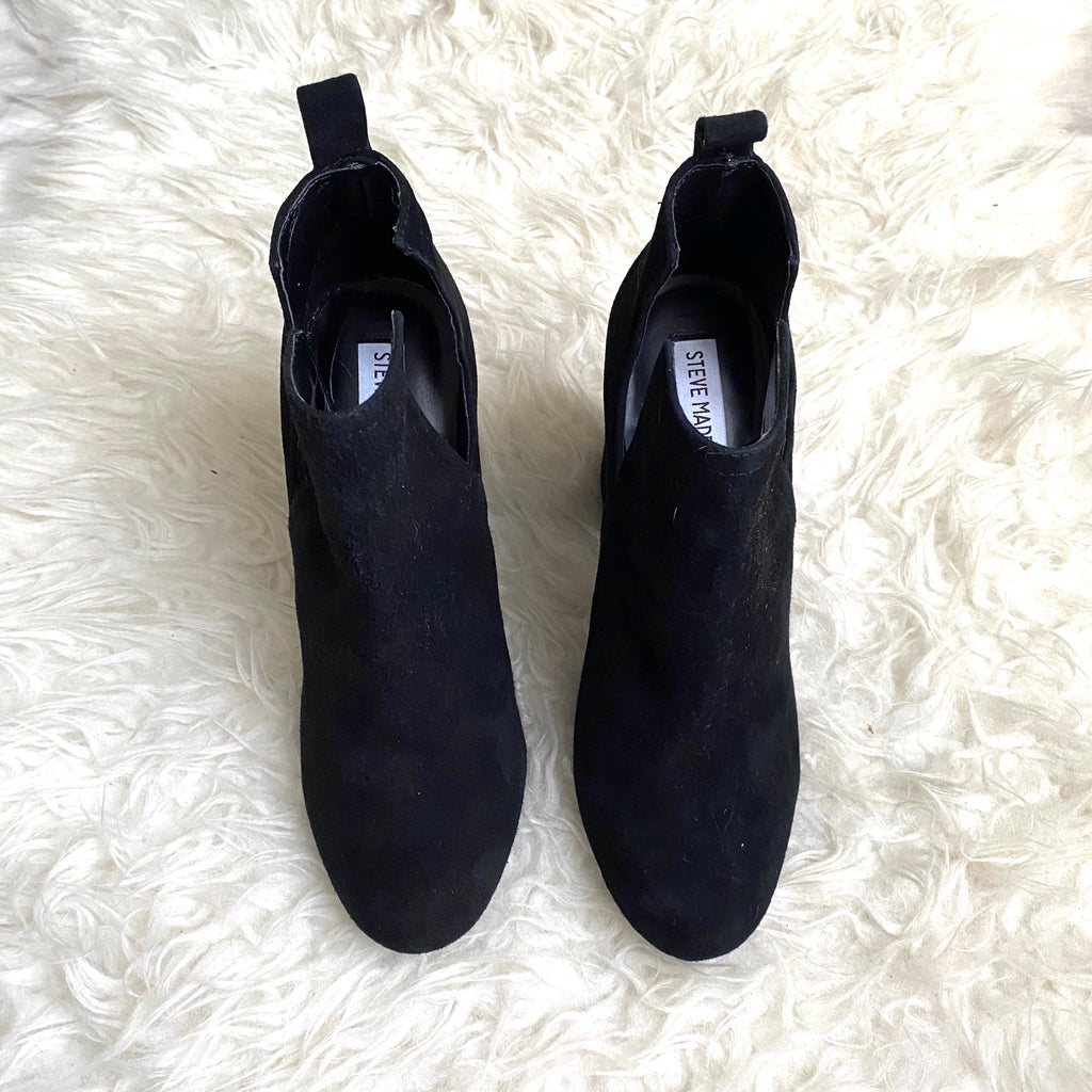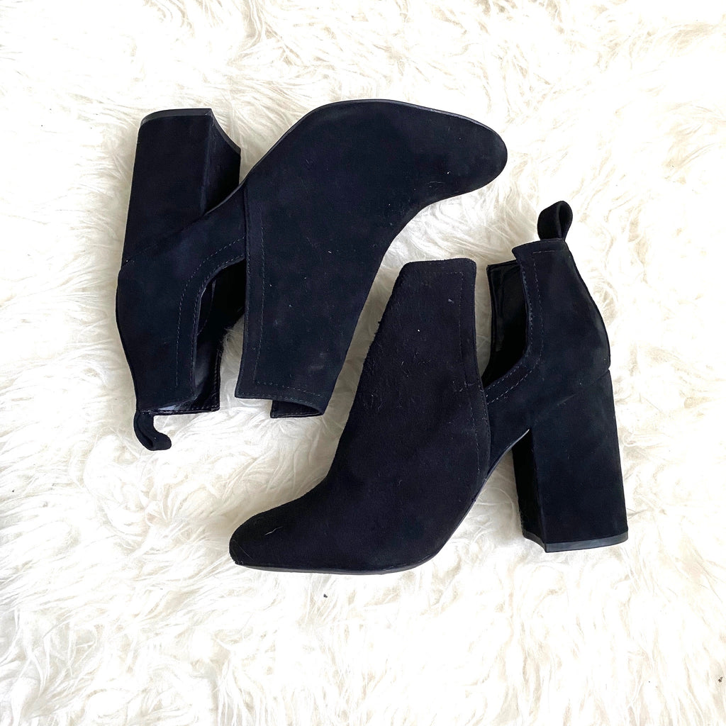 Steve Madden Black Suede Open Sided Booties with Block Heel- Size 8.5